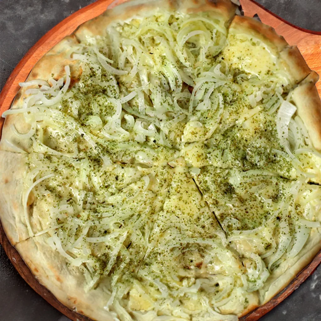 Pizza de muzzarella y rodajas de cebolla